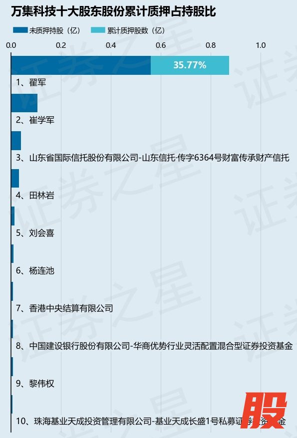 截止本公告日,股东翟军已累计质押股份3128.0万股,占其持股总数的35.77%。本次质押后万集科技十大股东的累计质押股份占持股比例(占持股比例的计算以公司最新一期财务报表公布的十大股东的持股总数为基准)见下图: